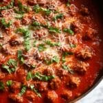 Store leftover meatballs and sauce in an airtight container in the refrigerator for up to 3 days. Reheat gently on the stove over low heat, adding a splash of water or broth if needed to loosen the sauce.
