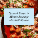 This quick and flavorful sausage meatball recipe comes together in just 15 minutes, making it perfect for busy weeknights. Tender meatballs simmered in a rich tomato sauce pair beautifully with pasta, polenta, or mashed potatoes for a comforting meal.