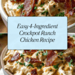 This 4 Ingredient Crockpot Chicken is a simple and flavorful meal perfect for busy days. With tender chicken, creamy ranch, and smoky bacon, it comes together effortlessly in your slow cooker. It’s a crowd-pleaser that requires minimal prep and maximum taste.