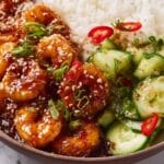 This Asian Chilli Garlic Prawns recipe delivers a flavorful and spicy dish featuring succulent prawns seared to perfection and coated in a vibrant, sticky sauce made with garlic, ginger, sriracha, soy sauce, and a touch of sweetness from brown sugar. Perfect as a main served with rice, it’s easy to prepare and packed with bold flavors that bring excitement to any weeknight dinner.