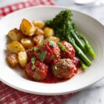 This delicious baked turkey meatballs recipe features tender turkey meatballs bursting with flavor, served alongside crispy roasted potatoes and tender steamed broccoli. Infused with fragrant rosemary, garlic, and the freshness of basil, this balanced meal is easy to prepare and perfect for a wholesome dinner.