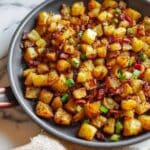 Bangin’ Breakfast Potatoes are crispy, savory, and perfectly seasoned with a touch of sweet maple syrup. This satisfying dish combines tender Yukon Gold potatoes, smoky bacon, and a sunny-side-up egg for a hearty start to your day.