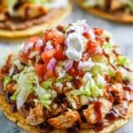 Keywords: BBQ Chicken Tostadas, Mexican Tostadas, BBQ Chicken Recipe, Quick Dinner, Mexican Street Food, Tostadas with Beans and Cheese