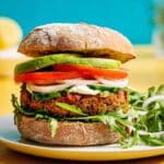 This black bean burger is a wholesome, flavorful alternative to the classic beef patty. Packed with sweet potato, walnuts, and spices, it offers a deliciously satisfying vegetarian option perfect for any meal. Serve it with a fresh cucumber and carrot salad for a vibrant, balanced plate.