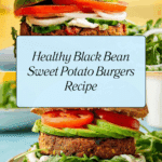 Keywords: black bean burger, vegetarian burger, sweet potato burger, healthy burger, meatless burger, homemade burger