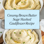 This Brown Butter and Sage Fluffy Mashed Cauliflower is a delicious, low-carb alternative to traditional mashed potatoes. Silky cream cheese blended with tender cauliflower, topped with fragrant brown butter and sage, creates a comforting and flavorful side dish perfect for any meal.