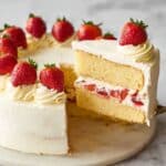 Keywords: butter cake, vanilla sponge cake, strawberry cake, whipped cream cake, classic dessert, homemade cake recipe