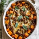 This Butternut Squash Casserole is the ultimate comfort food combining tender roasted butternut squash with a creamy Gruyere cheese sauce, topped with a crunchy, buttery panko and pecan crust. Perfect for cozy family dinners or holiday gatherings, this hearty casserole blends savory herbs, rich cream, and toasted nuts for a flavorful and satisfying dish.