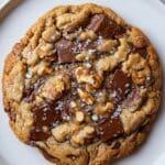 Delight in the perfect combination of rich butterscotch and semisweet chocolate chips in these homemade cookies. Soft, chewy, and sprinkled with flaky sea salt, they offer a delightful balance of sweet and salty flavors, enhanced by optional crunchy walnuts.