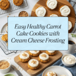 Keywords: carrot cake cookies, healthy carrot cookies, low sugar cookies, cream cheese frosting, fall desserts, spiced cookies, nutty cookies