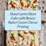 This Carrot Sheet Cake features moist, grated carrots and warm spices baked into a simple sheet cake, topped with a rich and creamy brown butter cream cheese frosting. The frosting combines the nutty depth of brown butter with smooth cream cheese and just the right amount of sweetness for a perfect balance. It’s an easy-to-make dessert that’s great for gatherings or an everyday treat.