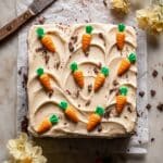 Keywords: carrot sheet cake, brown butter frosting, cream cheese frosting, easy carrot cake, moist carrot cake, sheet cake, dessert recipe