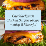 Cheddar Ranch Chicken Burgers offer a flavorful twist on the classic chicken burger, combining sharp cheddar cheese with zesty ranch seasoning. These juicy patties are easy to make and perfect for a quick weeknight dinner or weekend cookout.