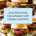 This classic cheeseburger recipe features juicy minced beef patties mixed with mature cheddar, breadcrumbs, and Worcestershire sauce, grilled to perfection. Served on toasted buns with fresh tomato slices, red onion, and crisp lettuce, these burgers are perfect for a hearty meal accompanied by your choice of sides like coleslaw or fries.