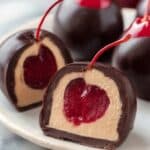 Keywords: cherry peanut butter balls, peanut butter treats, chocolate coated cherries, no-bake desserts, holiday treats