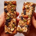 These chewy muesli bars are packed with wholesome ingredients like peanut butter, honey, oats, nuts, and seeds, delivering a naturally sweet and satisfying snack. With a delightful blend of textures and warm cinnamon flavor, they are perfect for breakfast on the go or a healthy treat any time of day.