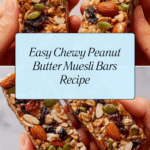 These chewy muesli bars are a perfect homemade snack that combines natural peanut butter, honey, and a mix of wholesome nuts and seeds. Easy to make and deliciously satisfying, they’re ideal for breakfast on the go or a healthy pick-me-up anytime.
