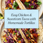 Keywords: chicken tacos, sweetcorn tacos, homemade tortillas, taco seasoning, healthy Mexican recipe