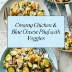 This chicken, leek, and blue cheese pilaf is a comforting and flavorful dish that combines tender chicken with fresh vegetables and the rich tang of gorgonzola. It’s a simple one-pan meal perfect for a cozy dinner.