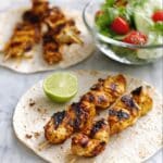 Chicken Masala Skewers with Fresh Salad and Wholemeal Chapatis Recipe
