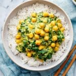 - Serve: Spoon the chickpea, spinach, and almond butter mixture over cooked rice and enjoy immediately.