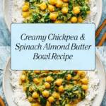 This comforting Chickpea, Spinach & Almond Butter Bowl is a flavorful and nutritious vegetarian dish. Featuring a fragrant blend of spices, tender chickpeas, creamy almond butter, and fresh spinach, it’s a wholesome and satisfying meal served over steamed rice. Perfect for a quick weeknight dinner, it combines simple ingredients with warming spices for a vibrant bowl full of taste and texture.