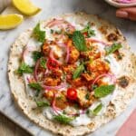 - Step 4: Divide the cooked chicken evenly among the warmed rotis. Top with chopped red onion, mango chutney or lime pickle, fresh mint or coriander, and a dollop of yogurt.