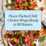 These chilli chicken wraps are a vibrant and flavorful meal perfect for any day of the week. Combining tender spiced chicken with fresh herbs and tangy chutney, they’re easy to make and satisfying to eat.