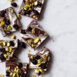 Indulge in this elegant and easy-to-make Chocolate Bark with Cherries and Pistachios. Combining rich 60% cacao dark chocolate and creamy white chocolate swirled together, this delightful treat is topped with salted roasted pistachios and sweet dried cherries for a perfect balance of flavors and textures. Perfect for gifting or enjoying as a sophisticated snack, this no-bake dessert requires simple melting techniques and minimal prep time.