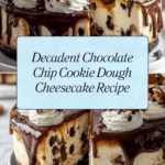 This decadent Chocolate Chip Cookie Dough Cheesecake combines a buttery graham cracker crust with rich, creamy cheesecake filling studded with mini chocolate chips and topped swirled with edible cookie dough balls. Finished with a luscious dark chocolate ganache and fluffy whipped cream, this dessert offers the perfect balance of classic flavors and indulgent textures, ideal for special occasions or any time you crave a luxurious treat.