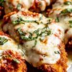 Keywords: Chicken Parmigiana, Chicken Parmesan, Italian Chicken, Breaded Chicken, Fried Chicken Cutlets, Tomato Sauce, Mozzarella Cheese