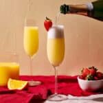 A classic and refreshing Mimosa cocktail made with MARTINI Asti sparkling wine, fresh orange juice, and garnished with a fresh strawberry. Perfect for brunch or celebrations, this simple and elegant drink balances the sweetness of sparkling wine with the citrusy brightness of orange.