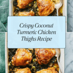 This coconut and turmeric baked chicken thighs recipe combines warm spices with creamy coconut milk for a comforting and flavorful meal. Tender chicken thighs are cooked with vibrant greens and served over fluffy rice, making it a perfect weeknight dinner that feels special.