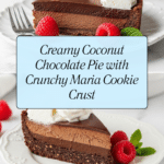 This Coconut-Cream Chocolate Pie features a rich and creamy chocolate filling made with dark cocoa and cream of coconut, nestled in a buttery Maria cookie crust. Topped with lightly sweetened whipped cream, this dessert offers a luscious balance of chocolate and tropical coconut flavors, perfect for any special occasion or indulgent treat.
