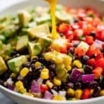 Keywords: Cowboy Bean Salad, black bean salad, corn salad, avocado salad, Mexican salad, no-cook salad, healthy salad, cilantro salad, chipotle dressing