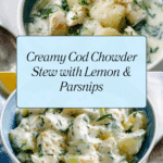 This creamy cod chowder stew combines tender cubes of potatoes and parsnips with flaky cod and smoked haddock, all simmered in a flavorful milk-based sauce infused with lemon zest and fresh parsley. Perfectly hearty and comforting, this stew is ideal served with crusty wholemeal bread to soak up every delicious bite.