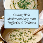 Keywords: creamy mushroom soup, porcini mushroom soup, wild mushroom soup, truffle oil soup, vegetarian mushroom soup, mushroom soup recipe