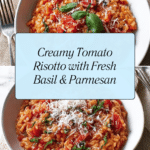 This creamy tomato risotto is a comforting and flavorful dish perfect for any season. Combining the rich taste of tomatoes with tender risotto rice, fresh herbs, and Parmesan cheese, it’s a wonderful meal that’s both simple and impressive.