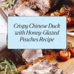 Keywords: Chinese duck recipe, crispy duck with peaches, roasted duck, Chinese five-spice duck, hoisin sauce duck, roasted peaches, duck dinner recipe