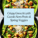 Keywords: Crispy gnocchi, cavolo nero pesto, asparagus, peas, homemade gnocchi, vegetarian Italian recipe