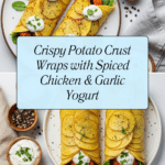 Crispy Potato Crust Wraps with Garlic Yogurt and Spiced Chicken combine golden, cheesy potato squares with flavorful, spiced chicken and a refreshing garlic yogurt sauce. Perfectly baked potato crusts serve as the wraps, filled with crisp veggies and aromatic herbs for a satisfyingly crunchy and savory meal.
