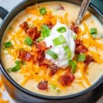 - Serve: Ladle the soup into bowls and top with your favorite loaded baked potato toppings such as bacon bits, sour cream, chives, or extra shredded cheese. Enjoy your warm, creamy soup!
