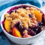 This Crockpot Blueberry Peach Cobbler is a delicious and easy dessert combining juicy blueberries and peaches with a sweet, crumbly topping. Cooked slowly in a crockpot, it offers a warm, comforting treat perfect for any occasion, with a hint of cinnamon and optional almond extract for extra flavor.