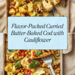 Keywords: curried cod, butter baked fish, roasted cauliflower, chickpeas, Indian spices, healthy fish recipe, oven-baked fish, one-pan dinner