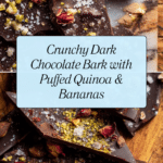 This dark chocolate bark with puffed quinoa and bananas is a delightful treat that combines rich chocolate with crunchy and fruity textures. It’s an easy-to-make snack perfect for satisfying your sweet tooth while adding a bit of wholesome crunch.