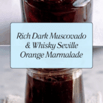 This dark muscovado and whisky marmalade offers a rich twist on a classic preserve. Combining the bittersweet tang of Seville oranges with the deep molasses flavor of muscovado sugar and a warming hint of whisky, it’s perfect for adding a touch of elegance to your breakfast or afternoon tea.
