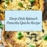 This deep-dish spinach pancetta quiche is a savory and satisfying dish perfect for breakfast, brunch, or a light dinner. The crisp homemade crust holds a rich filling packed with spinach, pancetta, sun-dried tomatoes, and creamy Havarti cheese. It’s a delicious way to impress family and friends with a homemade quiche.