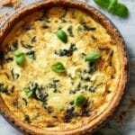 This deep-dish spinach pancetta quiche is a savory and satisfying dish perfect for breakfast, brunch, or a light dinner. The crisp homemade crust holds a rich filling packed with spinach, pancetta, sun-dried tomatoes, and creamy Havarti cheese. It’s a delicious way to impress family and friends with a homemade quiche.