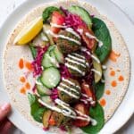 - To add more protein, consider adding hummus or a spread of tahini inside the wrap.