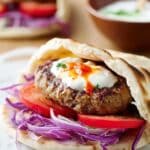 Keywords: kofta burgers, lamb burgers, Middle Eastern burgers, grilled lamb patties, spiced burgers, pitta bread burgers